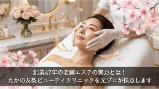 美容関連 創業47年の老舗エステの実力とは!たかの友梨ビューティクリニックを元プロが採点します 「たかの友梨」といえば、エステ業界を知らない方でもその名前を聞いたことがある方は多いのではないでしょうか。CMや雑誌で長年見かけてきたけれど、「実際のところ、どうなの?」という疑問をお持ちの方も多いかと思います。 はじめまして。私は... 2026.02.24 美容関連
